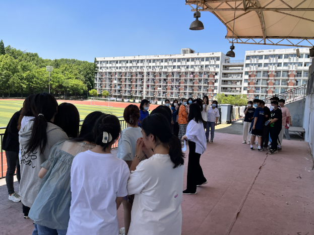 2022年5月4日中午12:30,武汉城市学院外语学部21级英语2班,在学校心里健康咨询中心三位老师的主持和指导下,在操场上开展了以“用心传递温暖,朝阳永存心间”的班级户外团体活动。虽然阳光强烈,但并没有影响到全班同学的热情,在热烈的活动氛围下,全班同学一起玩了各种有趣的游戏。