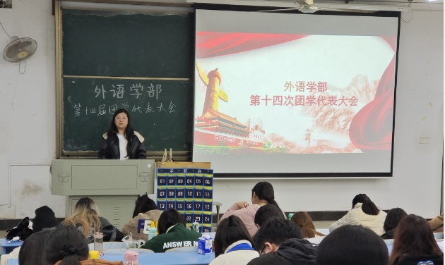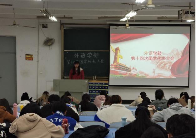 2022年9月27日,中午12:10,武汉城市学院外语学部于南六教学楼6201举行了学部第十四次团学代表大会,外语学部胡艳华主任,分团委书记闫艺老师,辅导员梁鸽老师,周雅乔老师,高轩英老师,曾希老师,及众多学生代表出席了本次会议。本次大会会议议程紧紧围绕外语学部学生活动,以培养新形势下社会事业的合格大学生为目标,带领学部学生团结奋斗,开拓进取,并积极创新工作方法。