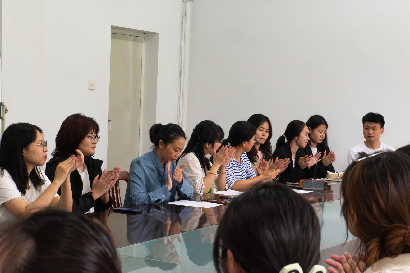2020级英语一班的李格同学作为老党员代表对新党员同志表示衷心的祝贺和热烈的欢迎,她在发言中说道:“我们作为社会主义的接班人应坚守党的信仰,始终保持对党忠诚,我希望大家能把这份信仰传承下去,把这份责任担当起来。”所谓薪火相传描绘的大概就是这样的场景吧!两位同学的发言结束后会议室掌声雷动。