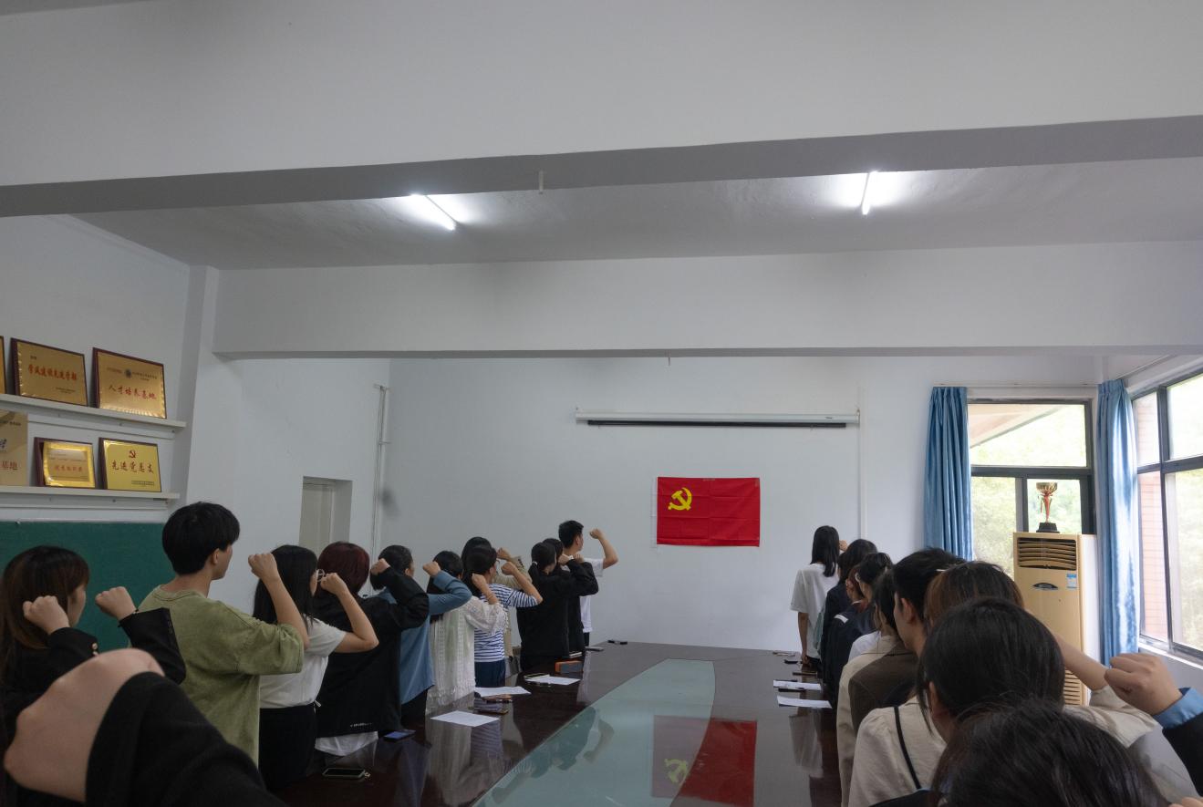 会议在无产阶级战歌——《国际歌》中拉开帷幕,随后,党总支副书记胡艳华同志宣读新党员名单,紧接着,全体党员持立正姿势,面向党旗,举右手握拳,在李巡同志的带领取下庄严宣誓,许下为共产主义奋斗终身的承诺。