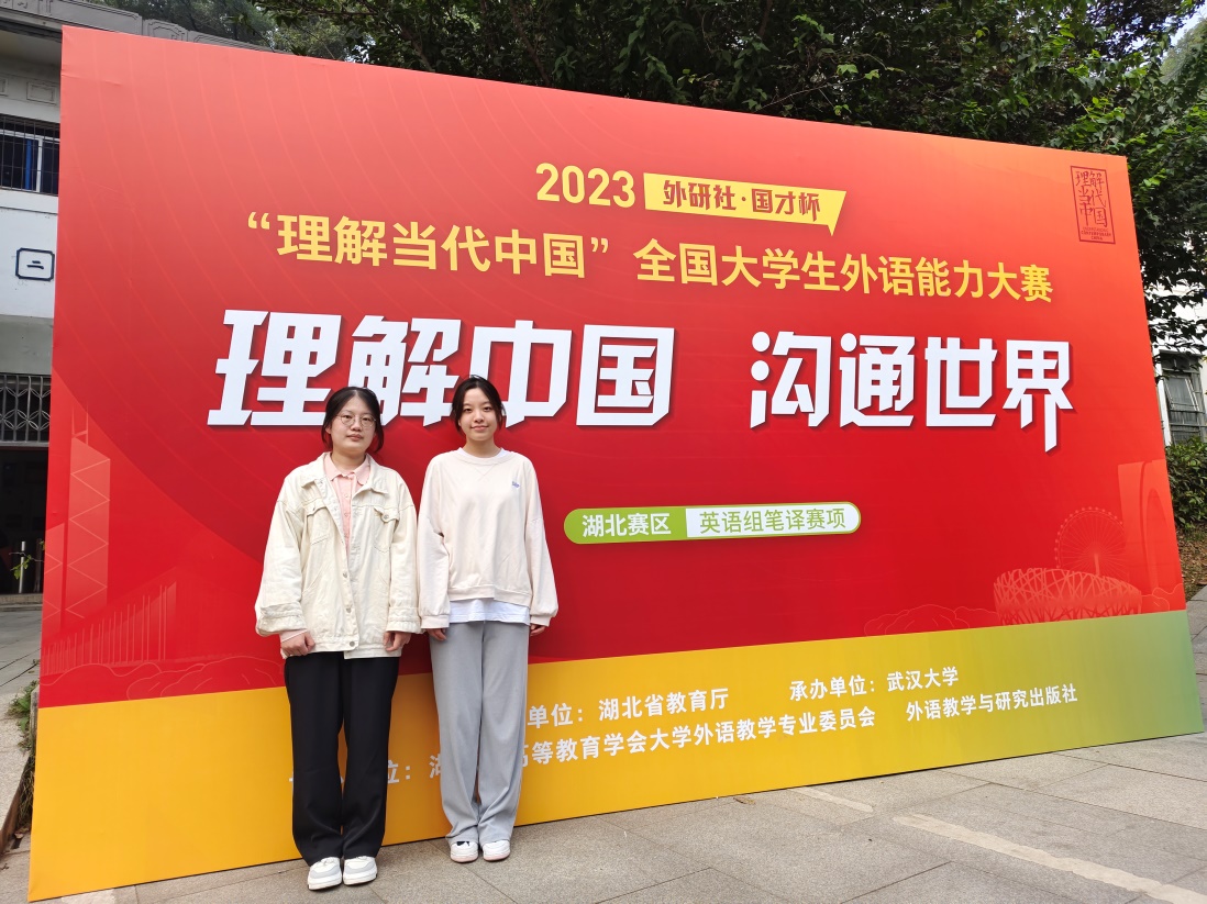 (通讯员 外语学部罗璐)10月28日,2023“外研社国才杯”“理解当代中国”全国大学生外语能力大赛笔译赛项湖北省决赛在武汉大学展开了激烈角逐,来自湖北省60多所高校的一百多位学子同场竞技。我校外语学部黄荷和吴依雯两位同学在罗璐老师和蔡新兴老师的指导下代表我校参赛,黄荷同学以全省第三名的优异成绩斩获湖北省金奖,将代表湖北省参加全国总决赛,实现了该赛事闯入国赛“零的突破”;另一名吴依雯同学获得铜奖。