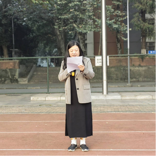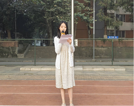 随后进入第二项,优秀学生代表发言,2021级英语3班的刘思涵同学在国旗下发表演讲,她以自身的经历为范例,分享自己的学习经验:“一是明确目标、心无旁骛,二是碎片化利用时间,三是客观看待得失心”。场下全体同学们听了她的发言,受到鼓舞,对未来学习倍感信心。