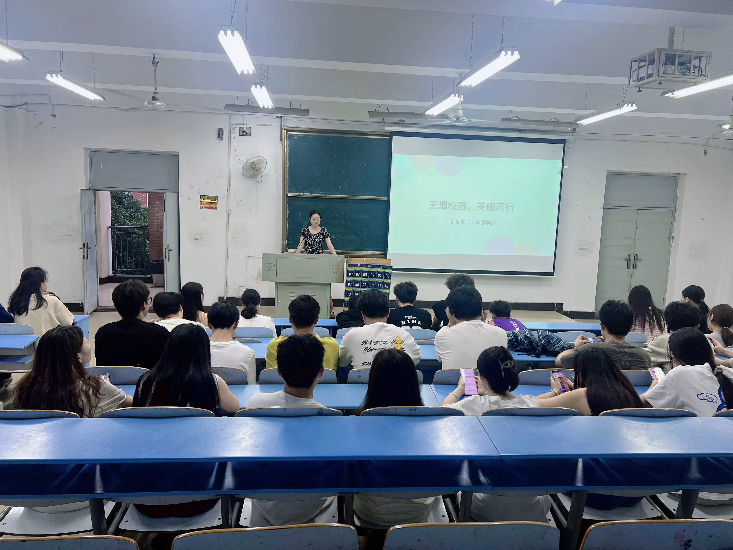 为了营造一个健康、清洁、无烟的校园环境,提高学生对吸烟危害的认识,外语学部在美丽校园创建活动中,积极围绕无烟校园创建开展了一系列主题教育班会。