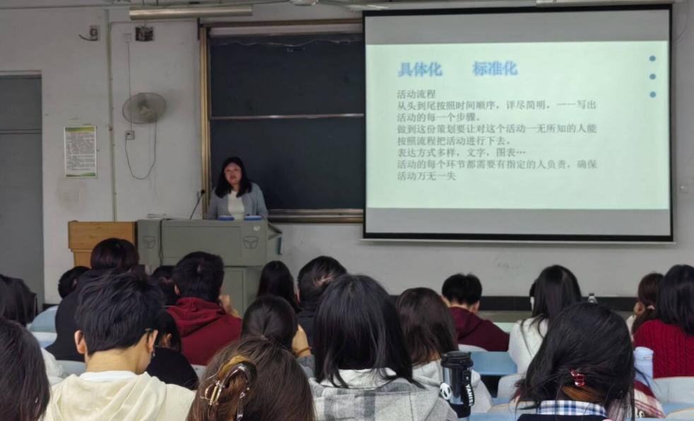 然后,闫艺老师补充强调了活动策划的具体化和标准化流程的重要性。她指出,一份详细的活动策划案应包括从准备到结束的每一个环节,以确保每个步骤都有明确的负责人,从而保证活动的万无一失。此外,她还提到了表达方式多样化的重要性,鼓励大家在策划活动中采用文字、图表等多种形式进行呈现。这种多元化的表达方式不仅能够提高活动的吸引力,还能使参与者更容易理解和接受活动的内容。