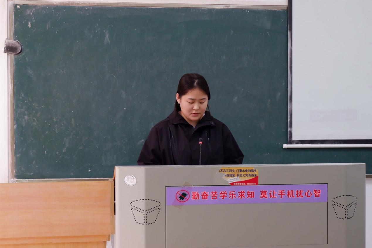 大会在学院的南教学楼2101教室里举行,现场气氛庄重而热烈。外语学部党总支秘书程桂花老师、党团协指委会长胡佳佳同学及31名入党积极分子参加了此次会议。