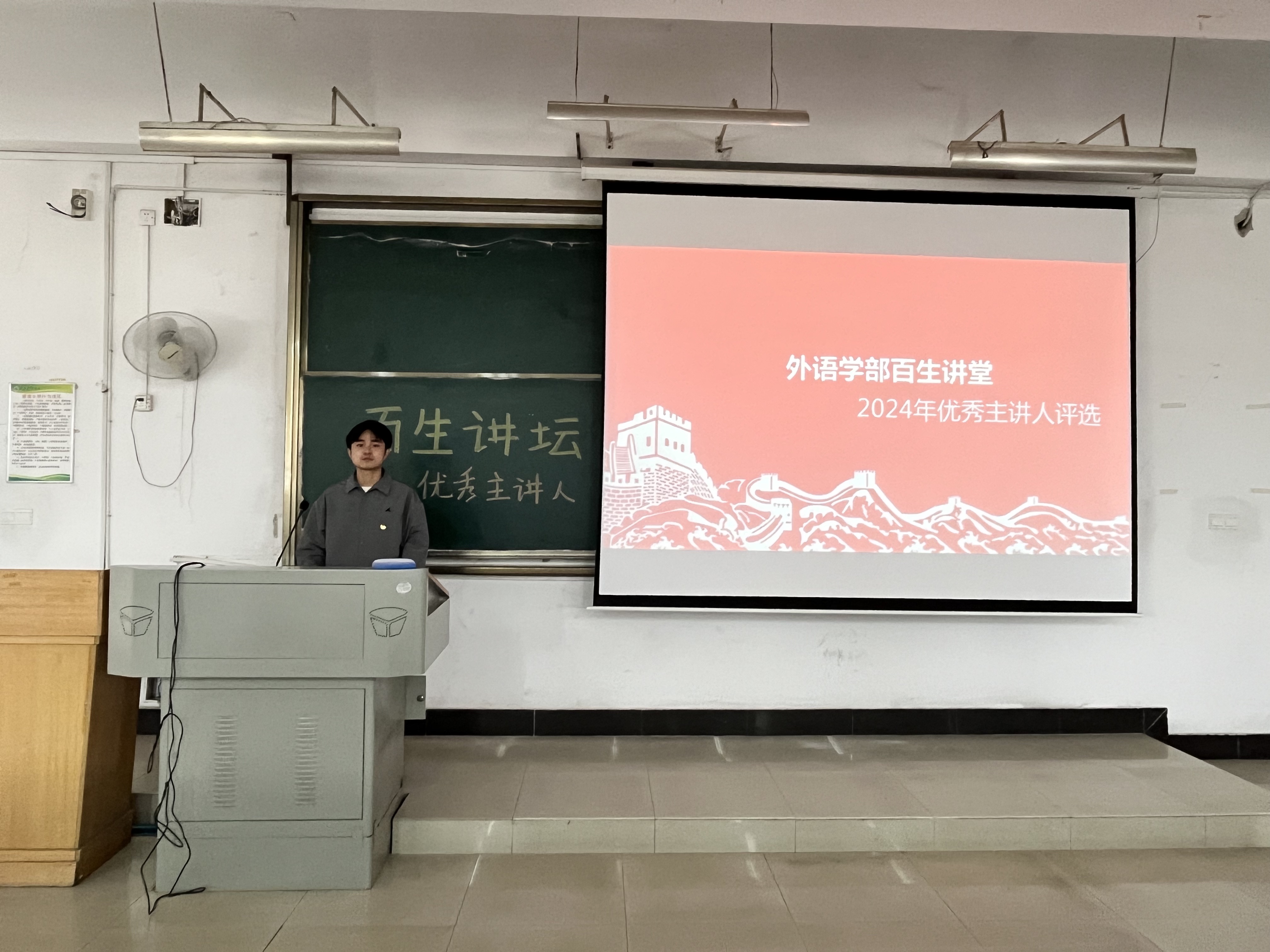 2024年5月13日中午12:00,在南6102,武汉城市学院外语学部开展了一年一度的百生讲坛优秀主讲人评选比赛。本次比赛吸引了众多才华横溢的学生参与,经过激烈的角逐,22级英语4班的肖明浩同学以其深刻的主题、流畅的表达和感人的情感,赢得了评委和观众的一致好评,荣获学部一等奖,占汝杰、郑灵芝等同学分获二三等奖。他们将代表外语学部参加举行的百生讲坛校级决赛。