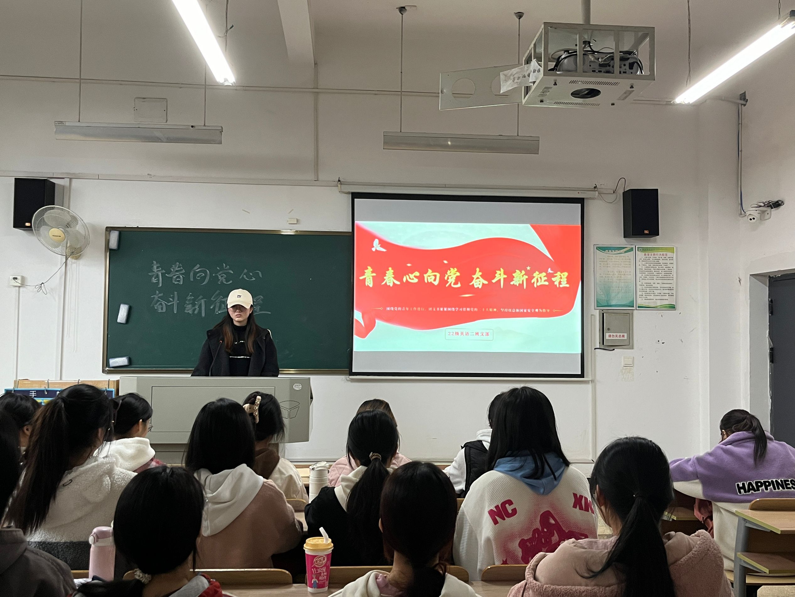 22级英语2班团支部以“挺膺担当砺青春,激情昂扬践使命”为主题发表演讲。英语二班团支书首先为同学们播放了《我和我的祖国》的相关片段,点燃了观众心中的爱国之情。让我们了解我们拥有如今的幸福生活,是多么不易,生活在和平年代的我们应该感谢无数先辈的付出。接下来,在团支书李欣珂的带领下,同学们开展了激烈的讨论,纷纷发表自己的感想。认为身在新时代的我们,要将自身所学与当今时代所需相结合,尽管力量微小,也要为祖国的繁荣富强,搬砖添瓦。李欣珂同学说:“我们生在红旗下,长在春风里,人民有信仰,国家有力量,民族有希望。目光所至皆为华夏,五星闪耀皆为信仰。身为新时代新青年,我们要心怀祖国,砥砺前行!”