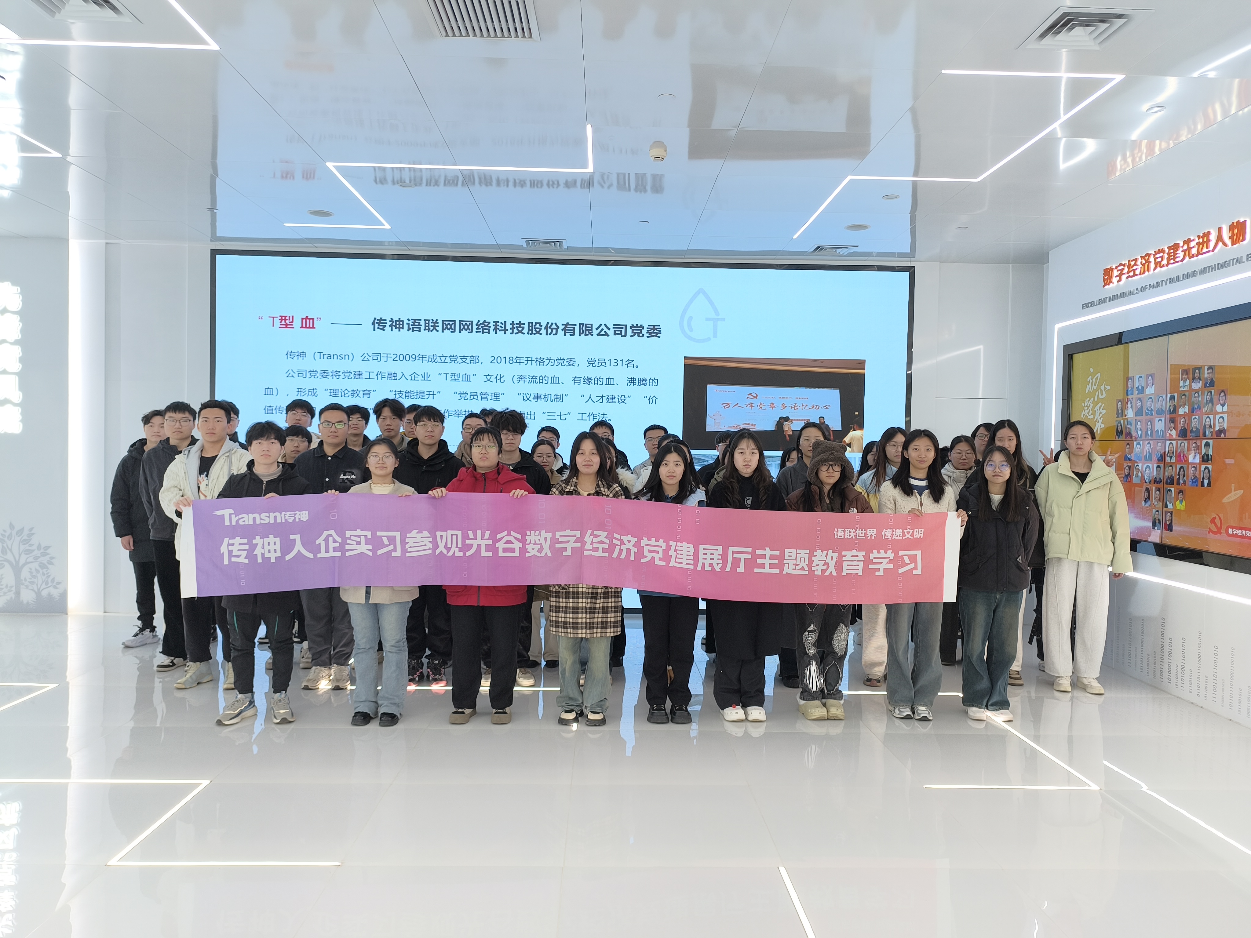 传神语联网网络科技股份有限公司在培养学生日语技能的同时,融入了党建教育,组织学生参观了光谷数字经济党建展厅,进行主题教育学习,发挥了企业红色文化育人的功能。
