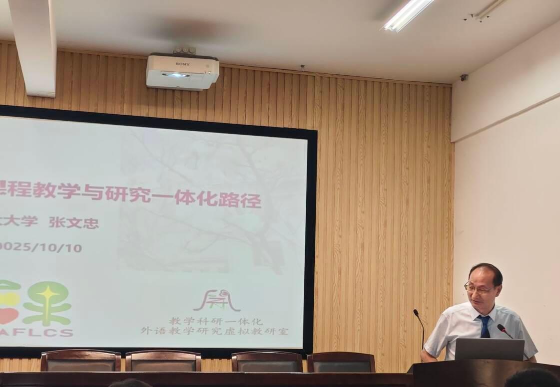 (通讯员 冯赛枫)10月10日下午,南开大学博士生导师、教育部高等学校英语专业教学指导委员会委员张文忠教授应我校外语学部邀请,开展题为“外语教师发展的课程教学与研究一体化路径”的学术讲座。讲座系统阐释了外语教师专业成长与教研融合的实践路径,为学部专业建设与教师发展提供了有益参考。