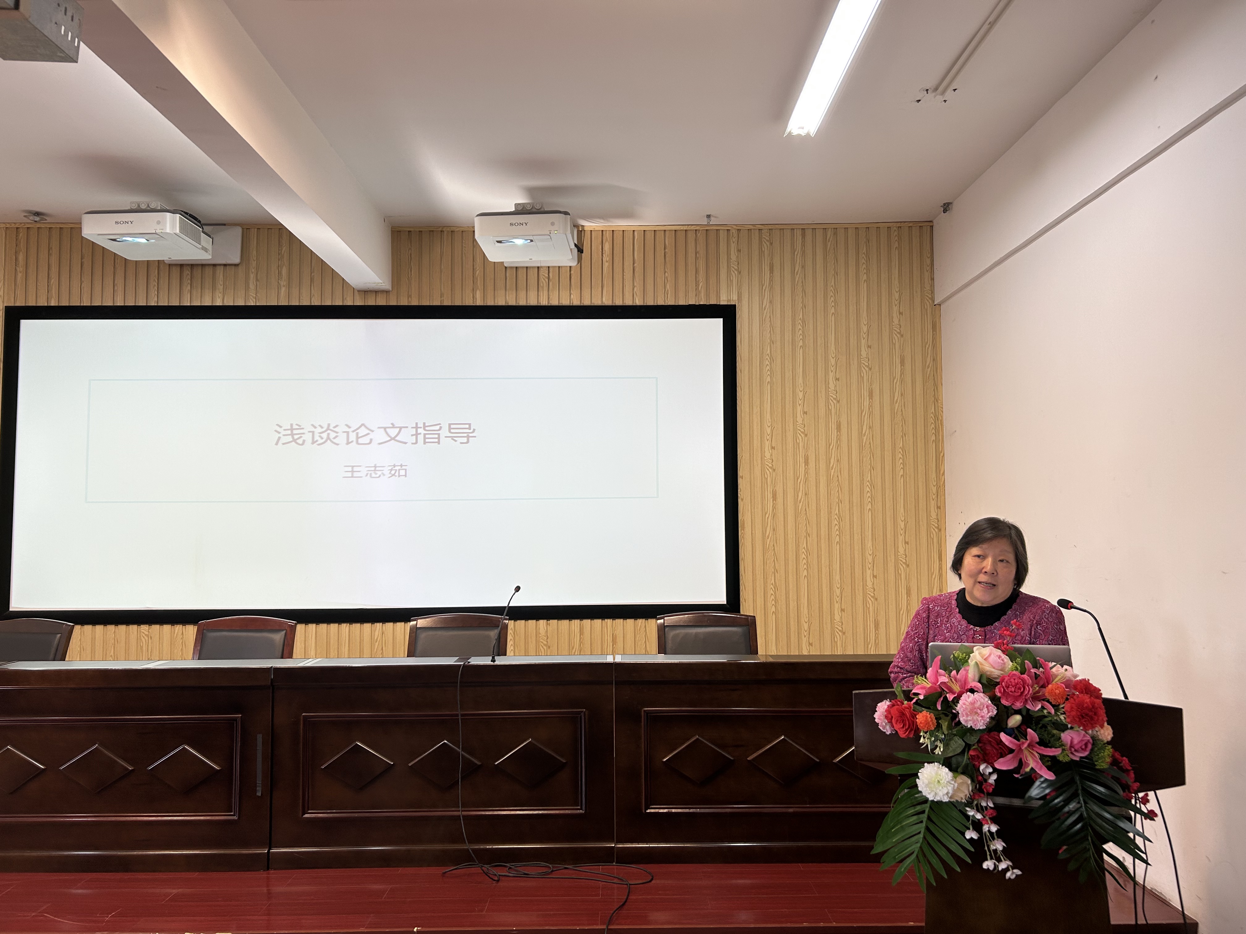 在经验分享环节,王志茹教授系统分享了其高效务实的论文指导方法。她强调,优秀论文始于“精准定题”,并注重激发学生主动性,要求学生提前准备多个选题并说明理由,教师则结合研究方向、时间安排与实操性等因素综合引导,共同确定选题。她还列举了文化分析、教学法探讨及当代学习现象研究等一系列具有时代特色的选题范例。在文献准备方面,王教授介绍了如何指导学生利用国内外权威数据库进行检索,并推荐“科研通”等工具提升文献获取效率。针对写作环节,她主张因材施教,依据初稿质量采取差异化指导策略,从“直接退回”到“逐段精修”,帮助学生深入理解写作规范与研究逻辑。面对人工智能的广泛应用,王教授建议教师们引导学生批判性利用AI在构建框架、辅助综述等方面的优势,同时高度重视并防范其可能带来的信息幻觉风险。