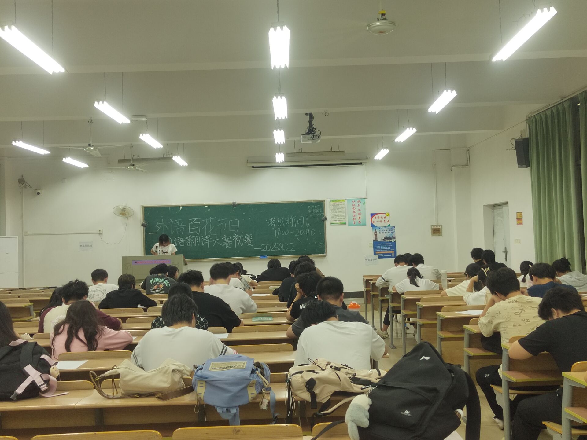 9月28日中午12:20,随着主持人戴永昕宣布比赛开始,选手们迅速进入比赛状态。日语翻译大赛决赛聚焦于日语口译,题型设置了 “短句即时互译”“听力材料复述翻译”“情景对话传译” 三个环节,模拟真实跨文化交流场景,考验选手的反应速度、逻辑梳理与语言转换能力,选手们对于各种题型巧妙回复,精彩作答,在有限时间内高效完成日语翻译,充分展现出专业素养与竞技状态。