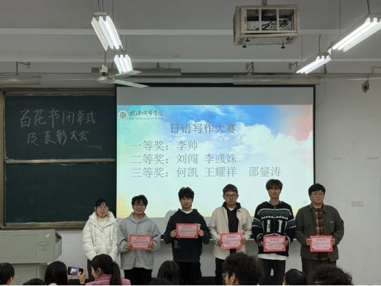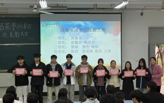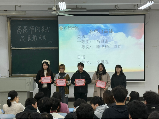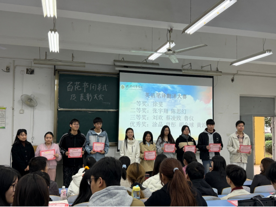 大会对在各项赛事中表现优异的学子进行了集中表彰。在过去一个多月的比赛中,各类赛事的同学们表现出饱满的竞技状态,和优秀的专业能力,展现了武汉城市学院学子的风采。在“名师出高徒”项目中,多名同学在导师悉心指导下脱颖而出,展现了师生协同成长的丰硕成果。商务英语实践技能大赛中,参赛者们将理论知识与实践相结合,彰显了未来国际商务人才的潜力。日语类赛事中,同学们在演讲、翻译、写作等赛项中表现亮眼,其流畅的表达与扎实的语言功底赢得了广泛赞誉。在外研社国才杯日语赛项中,选手们更展现了用外语讲述中国故事的卓越能力。英语竞赛同样异彩纷呈。笔译赛场上,同学们字斟句酌,精准传递语义;口译环节则考验了选手的即时反应与专业素养。此外,在外语配音大赛中,同学们用声音赋予角色生命,带来了一场精彩的视听盛宴。