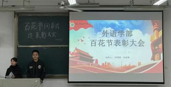 2025年10月9日,武汉城市学院外语学部于南6102教室隆重举行外语百花节闭幕式暨表彰大会。外语学部主任李儒勇老师、百花节各项赛事指导老师、学部全体辅导员及获奖学生代表共同出席了本次盛会。大会由向清源、肖金瑶同学主持。