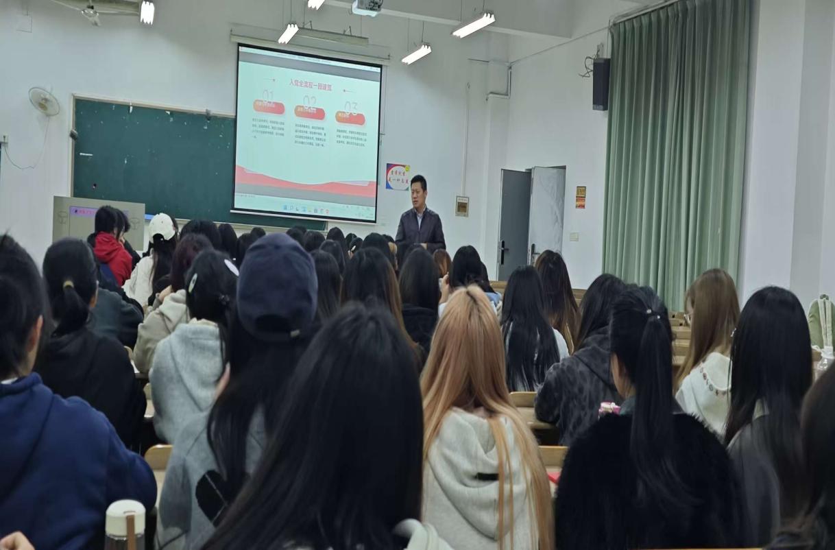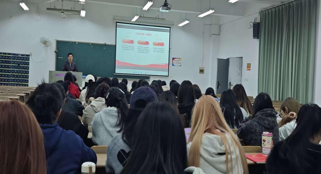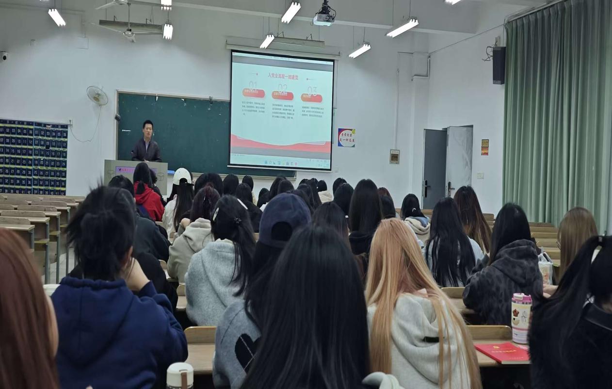 (撰稿人:吴斯唯 拍摄:陈欣、汪超)为深入细致地做好大学生党员发展的启蒙与教育工作,引导广大青年学子端正入党动机、明晰入党流程,2025年11月11日晚18:30,一场题为“青春向党:大学生入党全流程”的专题党课在我校南5302教室举行。本次党课由学校外语学部党总支组织,外语学部副书记李儒永老师担任主讲,吸引了学部近两百名有志于向党组织靠拢的学子踊跃参加,学习氛围浓厚。
