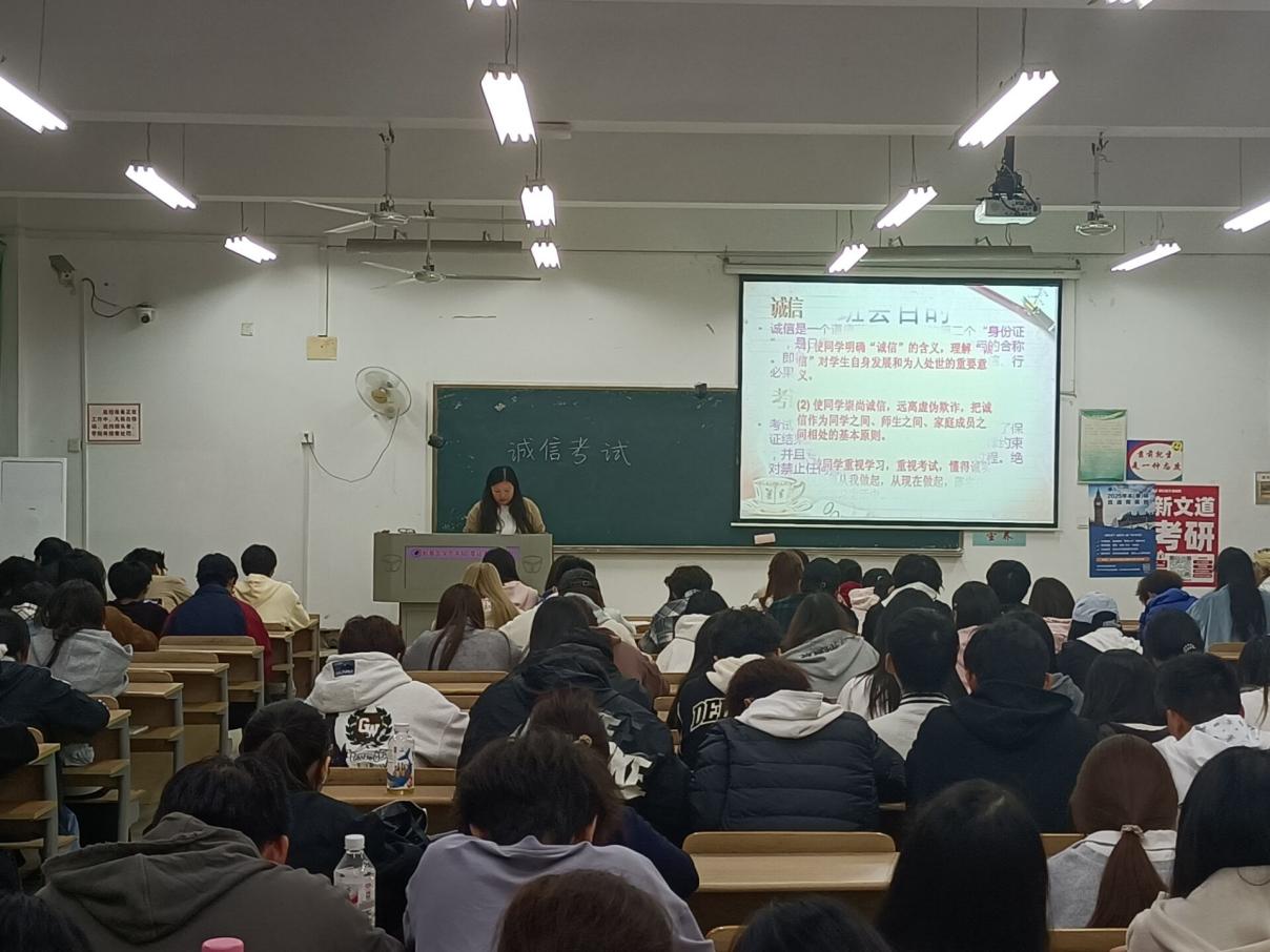 为深入贯彻社会主义核心价值观,强化大学生诚信意识,树立正确的考试观与人生观,2025年6月1日,外语学部在南校区5205教室成功举办了一场以“诚信考试教育”为主题的专题讲座。本次讲座由外语学部辅导员闫艺老师主讲,是外语学部文明素养系列教育的重要组成部分,旨在引导学生在学习与生活中践行诚信,筑牢成长成才的道德根基。