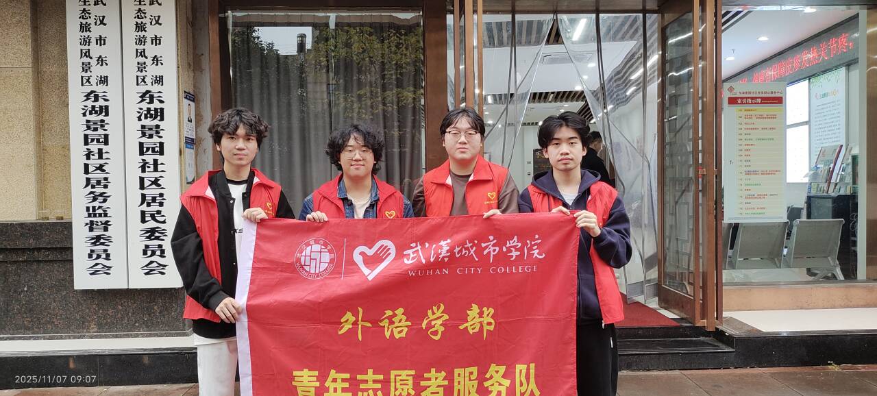 秋意渐浓,服务暖心。2025年11月7日上午,武汉城市学院外语学部由舒泽彬、芦昶文、杨凌峰、张渊组成的志愿者小队整装出发,前往东湖县园社区,开展了一场以“美化家园”为主题的环境整治志愿活动。
