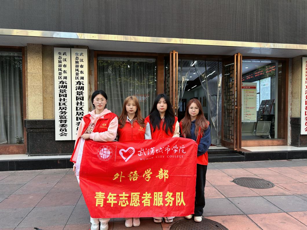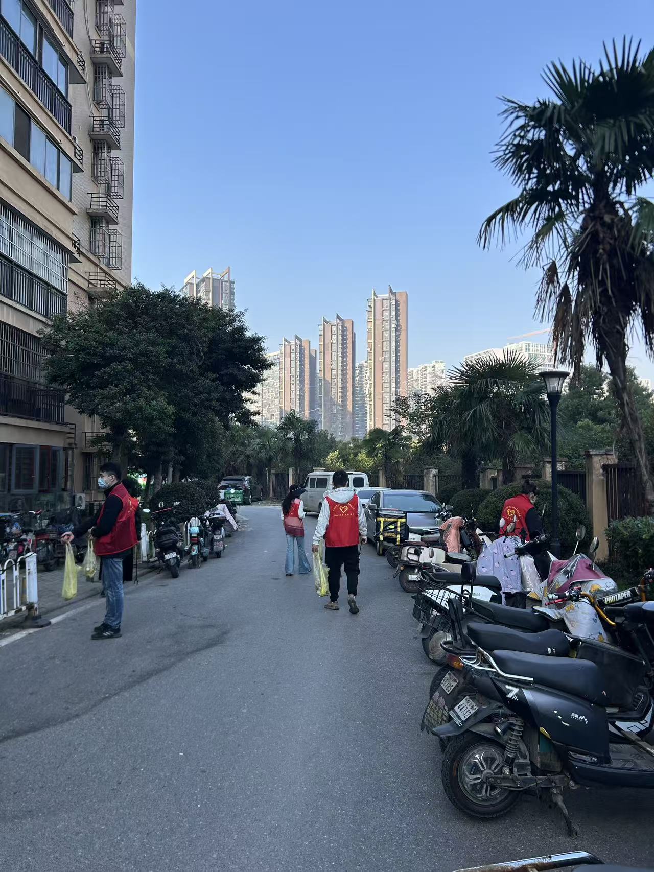 2025年11月14日,外语学部志愿者王书慧、董好、邓晶晶、邹沐瑶一行来到东湖景园社区,开展每周例行的“清洁家园”志愿活动,以实际行动改善人居环境。