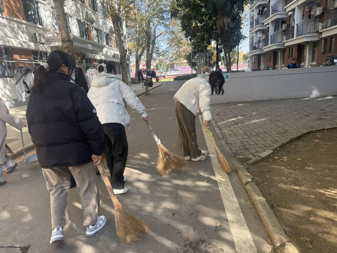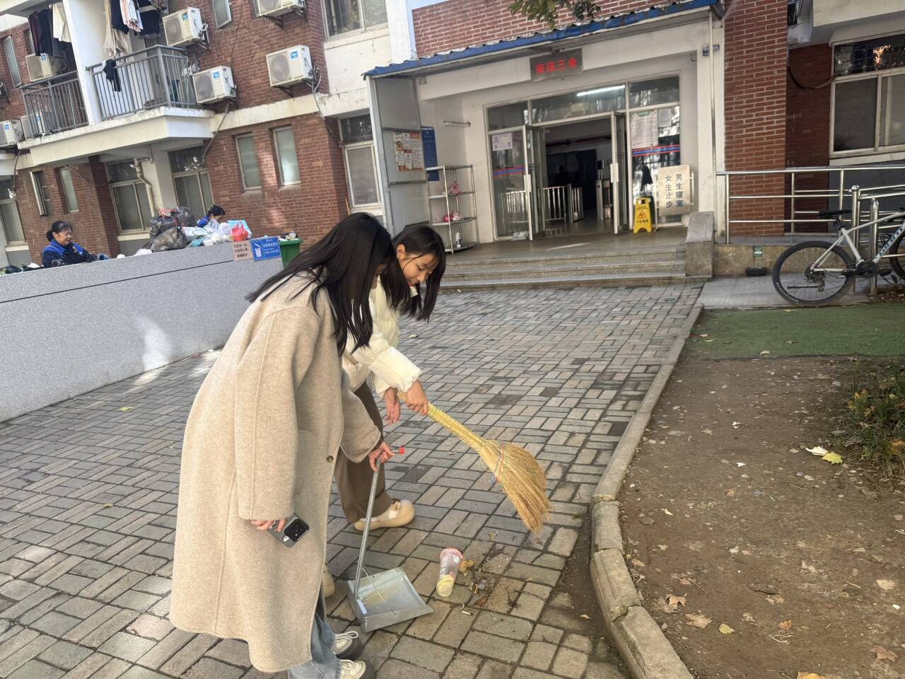 (本报讯 记者沈嘉怡)春风和煦,阳光正好。11月18日下午14:00,在原本静谧的校园午后,一群充满活力的身影成为了最亮丽的风景线。他们手持扫帚、簸箕,穿梭于寝室楼周围——他们正是来自25级英语2班的全体同学。为了响应建设绿色校园的号召,弘扬劳动精神,同学共同参加了一场以“美化校园,你我同行”为主题的劳动实践活动,利用宝贵的课余时间,用实际行动为共同的“家”换上新装。