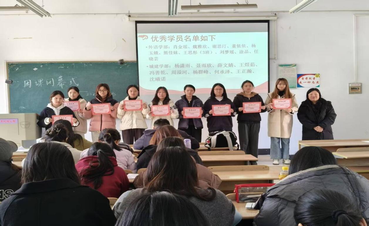 随后进入团课优秀学员表彰环节,李庆老师和闫艺老师为在本次团课中表现优异、成绩突出的学员颁发了“优秀学员”荣誉证书。来自外语学部的肖金瑶、魏雅欣、谢思汀、董依依、刘梦瑶等同学以及城建学部的杨潇雨、聂雨欣、薛文婧、王煜茹等同学获得表彰。