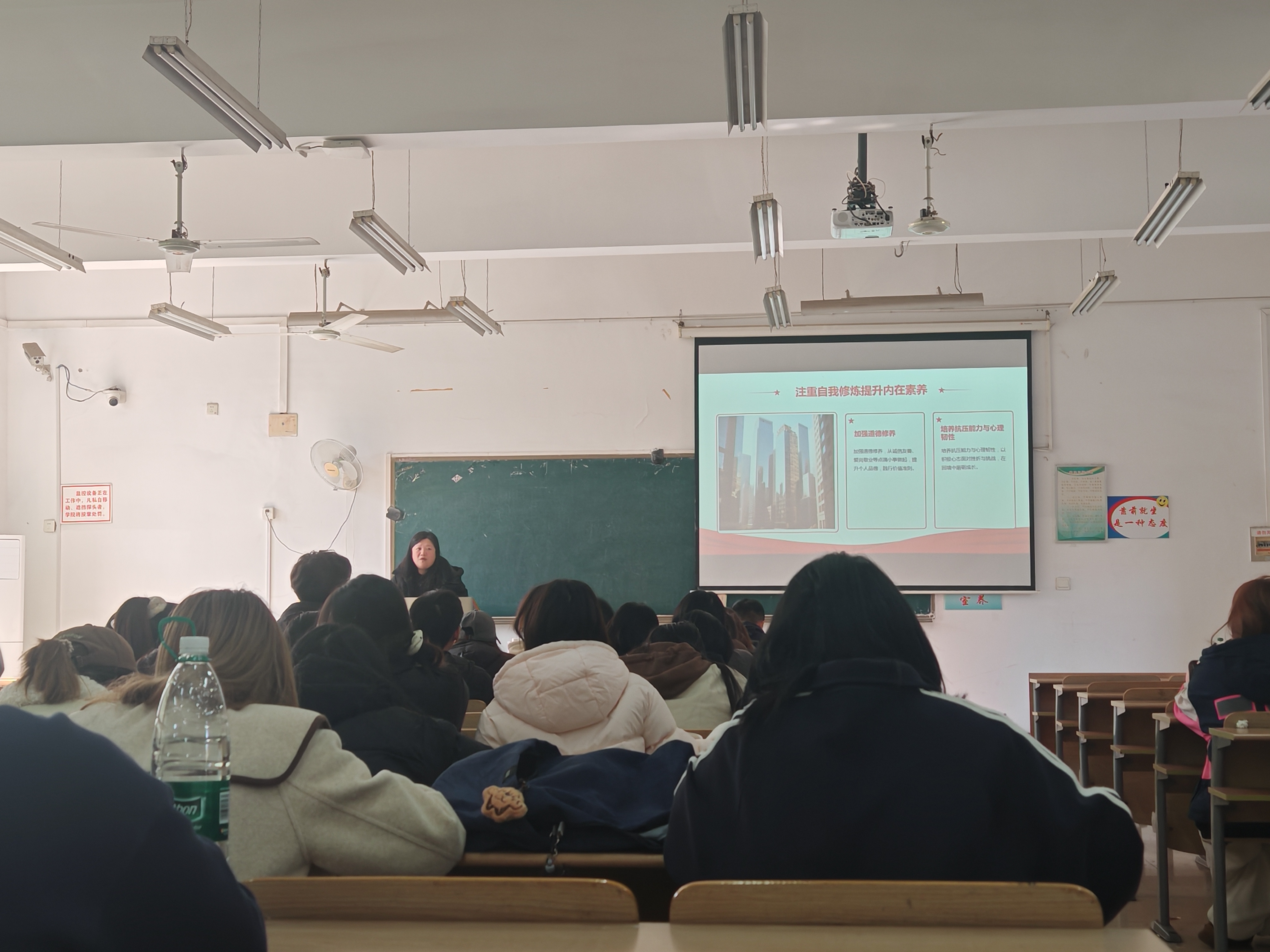 在讲课中,闫老师用贴近生活的语言解释抽象概念,引导同学们理解世界观、人生观和价值观对个人成长的意义。她将世界观比作“认知世界的望远镜”,鼓励同学们学会全面、发展地看问题;将人生观喻为“规划人生的指南针”,探讨如何将个人理想与社会需要相结合;将价值观视为“行为选择的度量衡”,引导同学们思考如何用社会主义核心价值观指导日常选择。