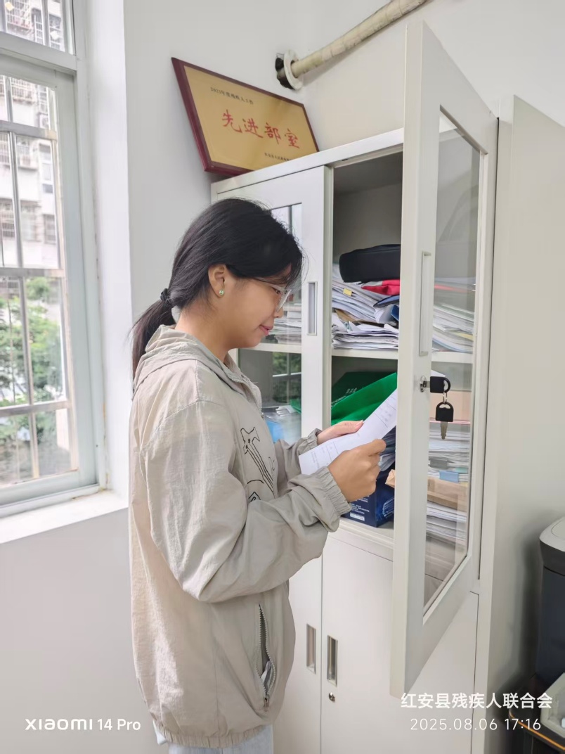 基层是最好的课堂,群众是最好的老师。2024级商务英语专业学生姚梓星放弃假期舒适区,在家乡红安县残疾人联合会坚守实习岗位一个月。面对陌生的助残政策与复杂的服务需求,她摒弃旁观者心态,以"空杯"姿态主动学习业务流程。从接听咨询热线时的耐心倾听,到接待来访残疾人时的真诚交流,她逐渐领悟到"人道、廉洁、服务、奉献"八字背后沉甸甸的分量。一次,为帮助一位视障老人补办证件,她反复沟通、多方协调,当老人紧握她的手连声道谢时,她突然理解了"被需要"的价值。这段经历不仅锤炼了她的跨文化沟通能力,更重塑了她的价值观——真正的专业本领,应服务于最柔软的社会需求。她的踏实表现赢得了残联领导"有担当、有温度"的高度评价。