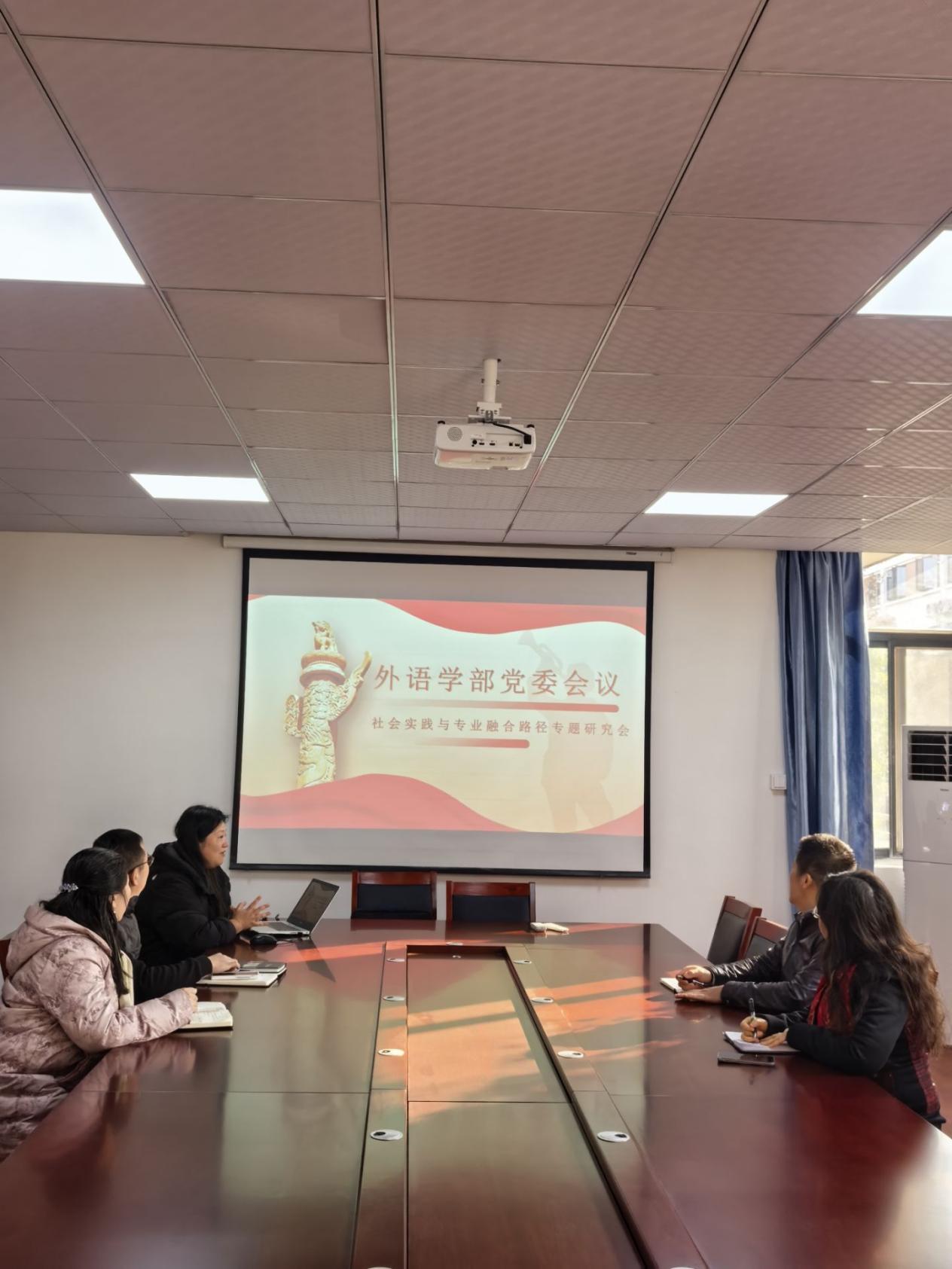 2025年11月13日下午15:00,武汉城市学院外语学部党委在B316会议室召开党委研究团的工作专题会议,聚焦“社会实践与专业融合路径”开展深入研讨。本次会议由外语学部党总支副书记李儒永主持,外语学部学部主任宋红波、党总支秘书程苏安、分团委书记闫艺及教师代表共同参会。本次会议旨在探索将社会实践、专业实习、赛事活动与思想政治教育深度融合的创新路径,打造具有外语特色的高质量育人体系。