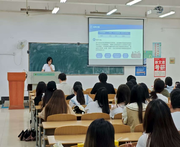 讲座伊始,詹蓉老师介绍了外语学部雄厚的师资力量:教师团队不仅拥有扎实的学术背景和丰富的教学经验,涵盖深耕英语文学、语言学等领域的资深教授,还包括熟悉行业实务的“双师型”教师,能够全方位支撑学生在学术深化与实践应用上的双重需求。