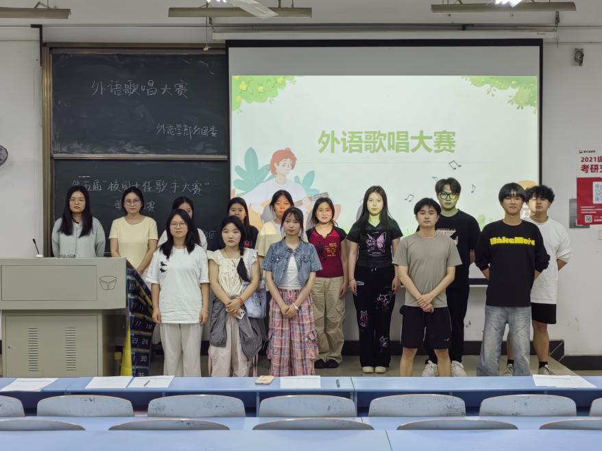 2025年4月10日晚,武汉城市学院南六教学楼6201教室灯火通明,掌声与歌声交织。外语学部在此隆重举办外语歌曲大赛初赛,以“声动外语,乐融中外”为主题,旨在通过音乐展现外语学子的语言能力、艺术修养与跨文化理解力,进一步营造开放、包容、活跃的国际化校园文化氛围。
