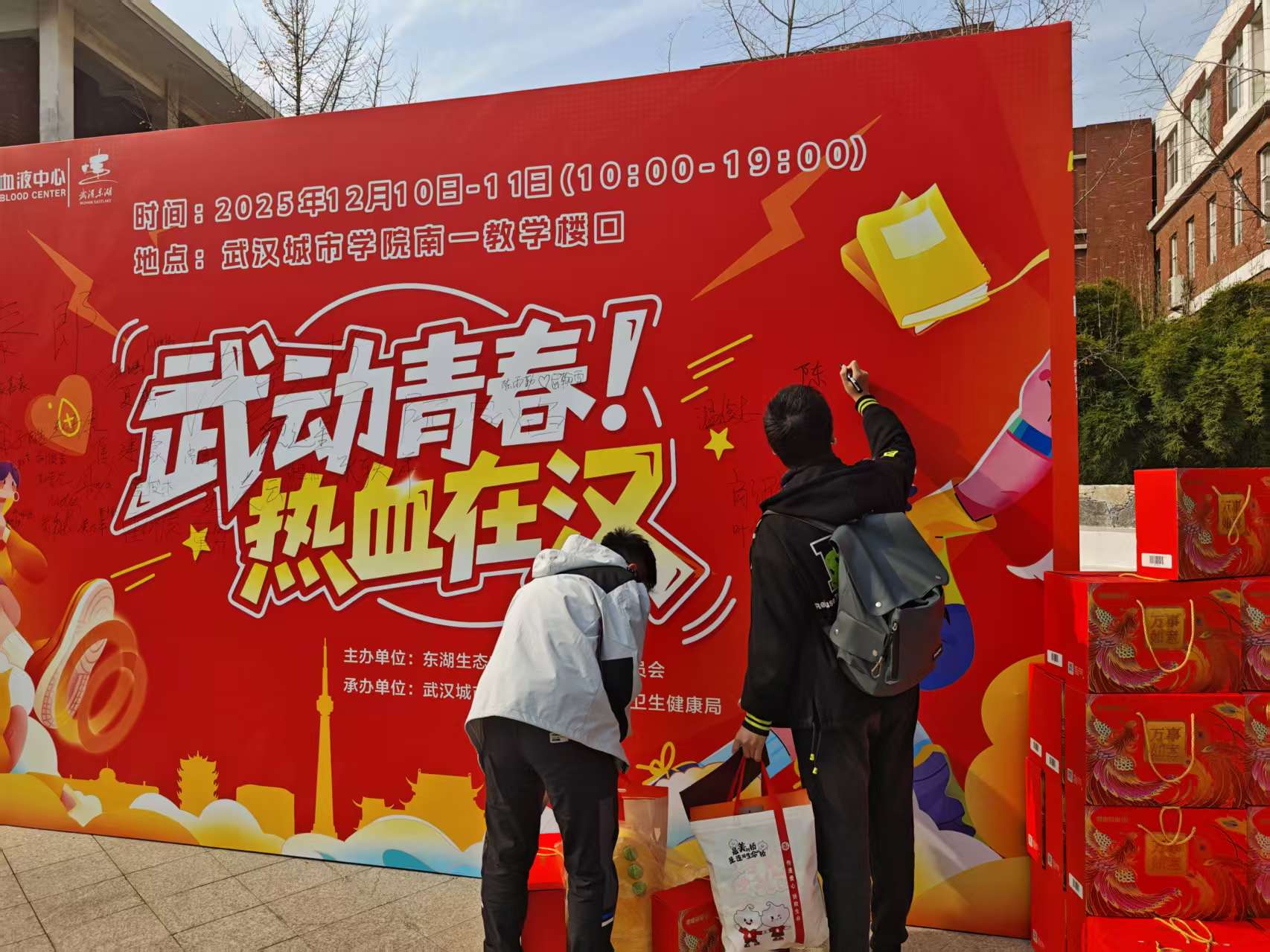 为进一步弘扬“奉献、友爱、互助、进步”的志愿精神,充分发挥青年学生在社会公益事业中的积极作用,12月10-11日,外语学部在学校统一部署下,开展了为期两天的“武动青春,热血在汉”主题无偿献血志愿活动。校党委书记肖军,外语学部副主任李儒永等亲临现场,亲切慰问参加献血的同学和现场志愿者。