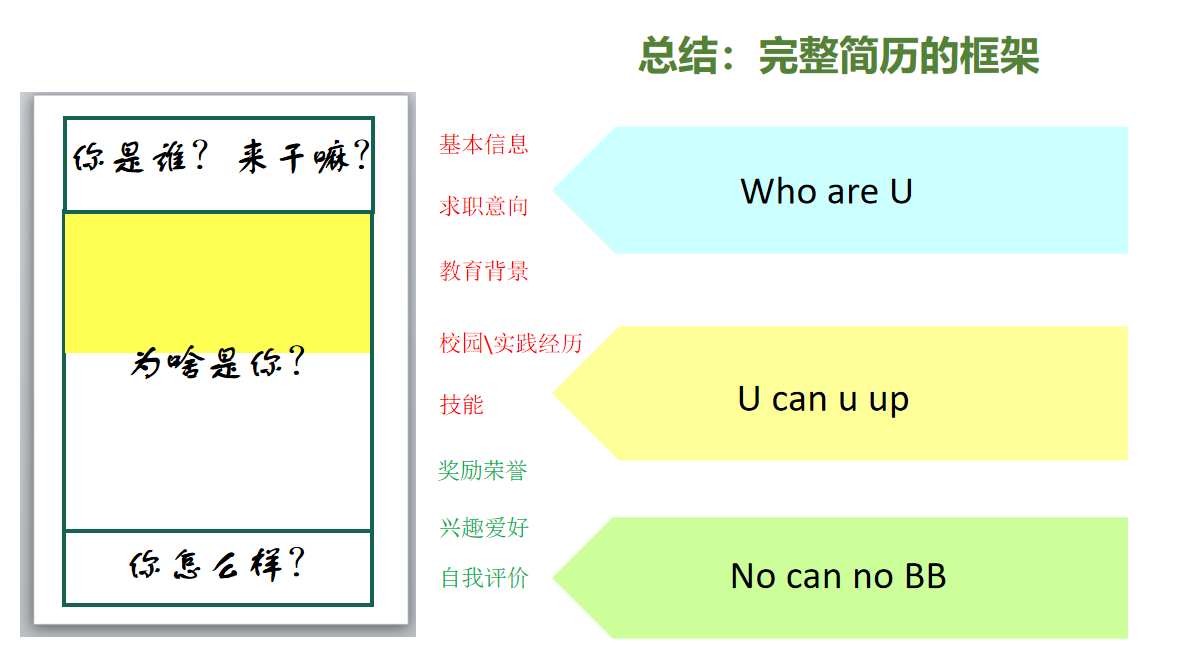 讲座伊始,周雅乔老师直击简历制作中的关键问题:"简历要不要封面?""基本信息该如何取舍?"她明确指出,简历内容的去留只有一个核心原则——是否能为进入下一轮面试加分。基于这一原则,周老师详细解析了基本信息栏的撰写要点,强调联系方式必须准确无误,照片应展现职业形象,而求职意向必须具体明确。