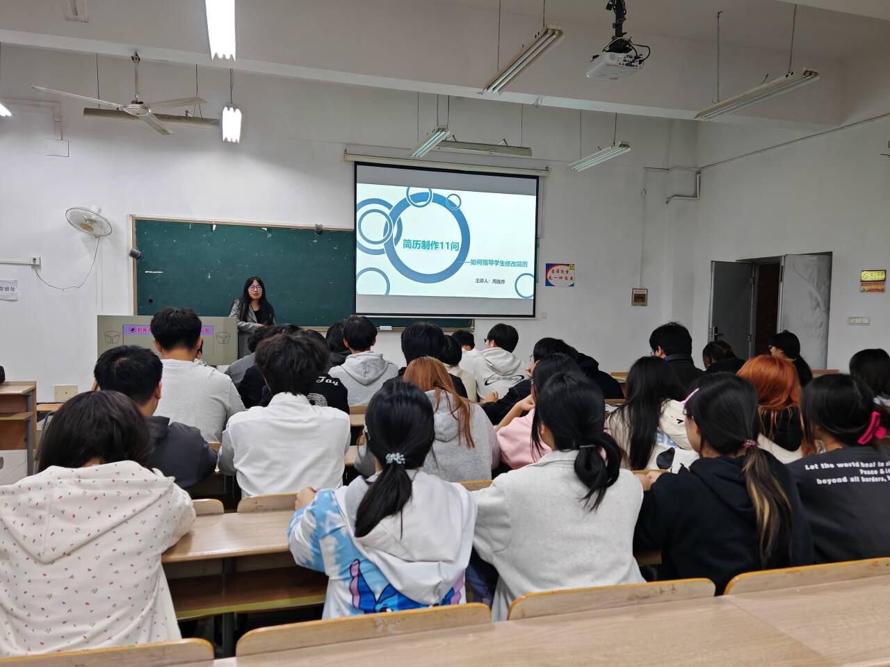 2026年3月15日晚,外语学部在5302教室举办"简历制作十一问"专题讲座。本次讲座由学部辅导员周雅乔老师主讲,面向24级全体学生,针对简历制作中的常见问题进行了系统讲解。