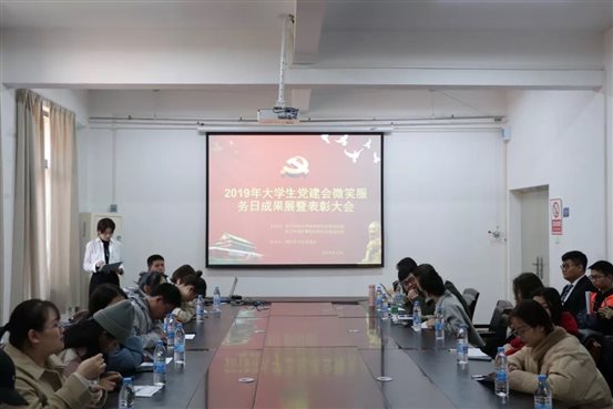 (外语党建讯  撰稿人:罗咏荷 赵维逸)为表扬各学部2019年度志愿服务活动,激励莘莘学子学习志愿者精神,引导积极向上的校园风气,我院于2019年12月13日中午行政楼A333举行了“微笑服务日”成果展暨表彰大会。两院党委组织部副部长关晓玲老师、组织监察科副科长吴丽波老师以及各学部党建会会长出席了此次大会。