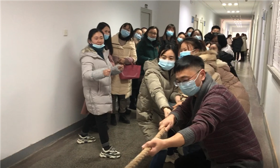 为了丰富教职工的精神文化生活,促进交流,发扬团队精神,增强凝聚力,外语学部于2020年12月4日16:00在学部楼开展了拔河比赛,比赛由学部分工会组织,学部主任崔艳萍担任裁判,全体教职工有的参赛、有的加油,现场气氛热烈,大家笑逐颜开。