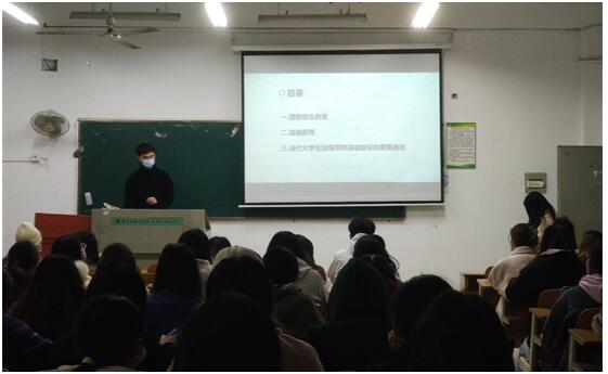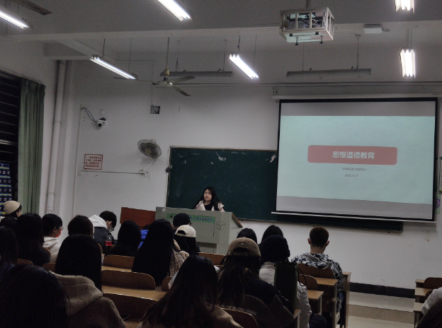 2001年11月7日下午73101时,外语学部在教学楼南3101教室,开展了以“遵守道德规范,坚定正确思想价值观”的思想道德主题讲座。本次讲座,学部邀请了辅导员曾希老师作为主讲人,19级英语专业刘诗凡同学主持,外语学部19级英语专业全体同学学生参加了本次讲座。
