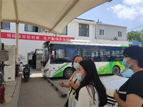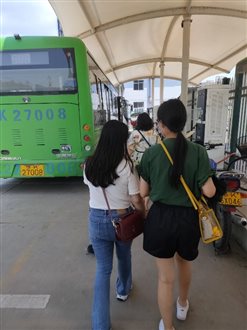 后期团队进行了实地实践,参观了停车场和充电桩等车辆运行的基础建设设备,分组搭乘公司的各类公交客车等进行实地的体验,并在搭乘过程中和乘客及附近居民进行交流,了解当地居民因交通变迁而产生的自身生活水平的变化以及他们的感受。