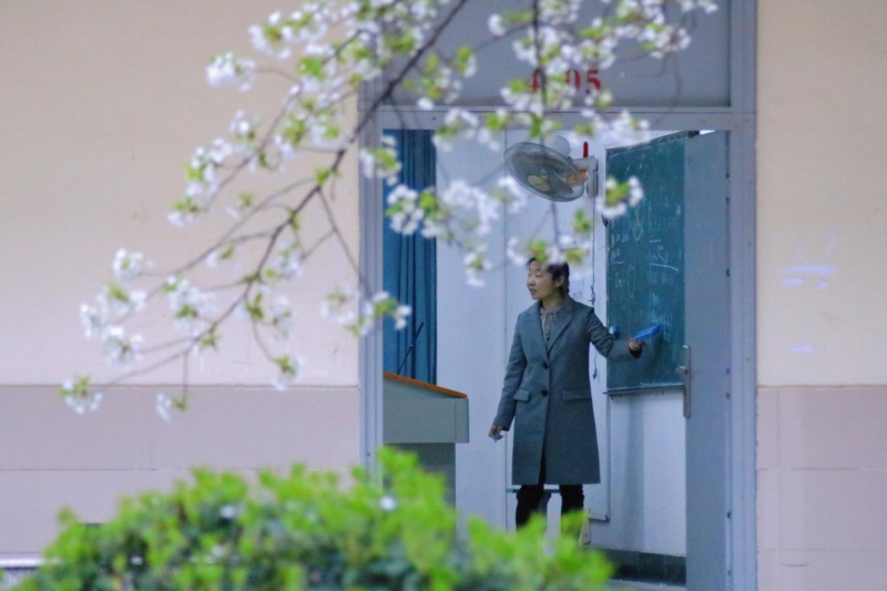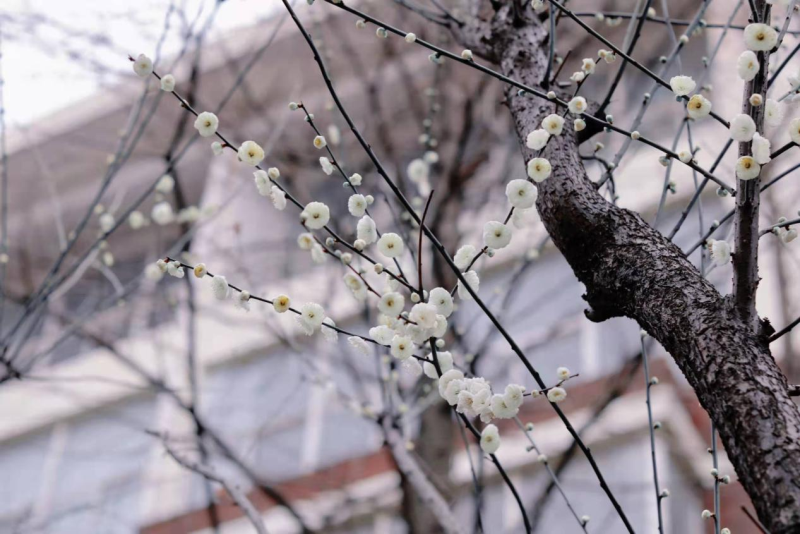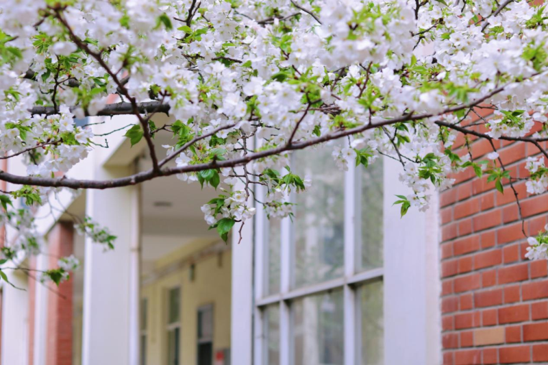 一场雷鸣电闪的春雨过后,南四、南五教学楼中央的白樱接过接力棒,毫不逊色地展现着自己的魅力。在这里上课,变成了一件浪漫的事。