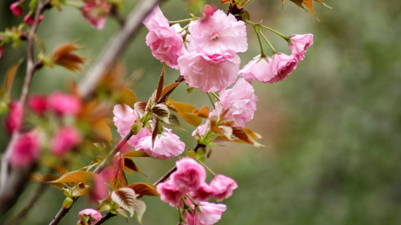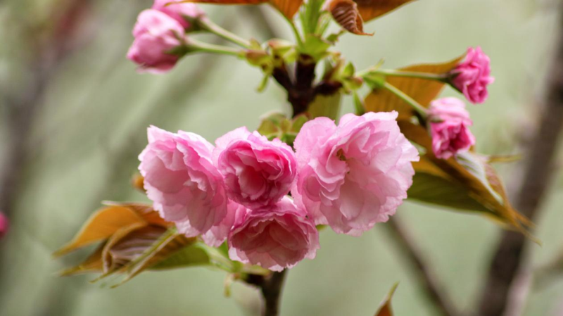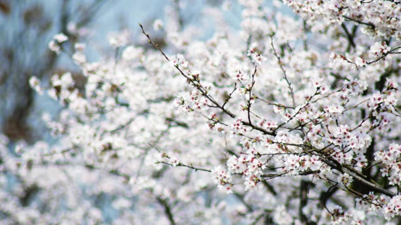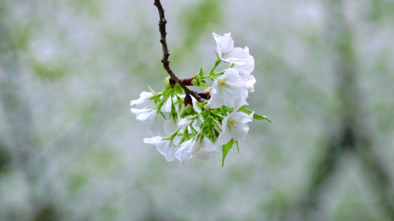 晚樱这时候也不甘示弱,短短两天,就已开满枝头,在白樱园中占据一席之地。