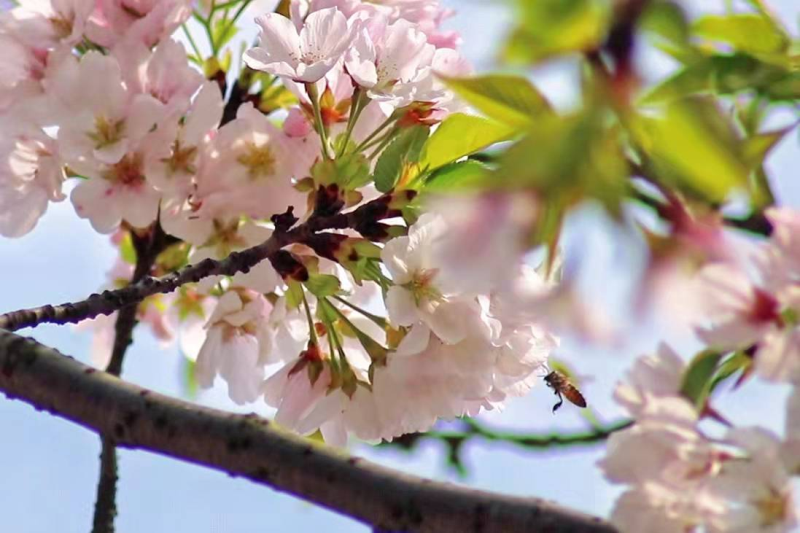 连续的好天气,早樱也按耐不住性子,趁着夜色悄悄开满枝头,800m的樱花路,一夜之间,花海灿烂,给学校学子带来巨大的惊喜!蜜蜂也争先恐后地前来采集新鲜的花蜜,“嗡嗡嗡...嗡嗡嗡...”热闹非凡。