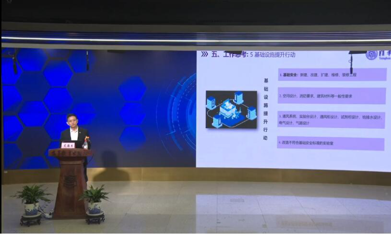 视频会议上,清华大学实验室管理处副处长艾德生教授对《高等学校实验室安全检查项目表(2022年)》修订内容以及本年度检查重点进行详细解读,苏州大学实验管理处处长魏永前教授、中国矿业大学安全科学与应急管理研究院院长李爽教授就高校实验室安全基础理论、管理实践等内容进行经验交流。