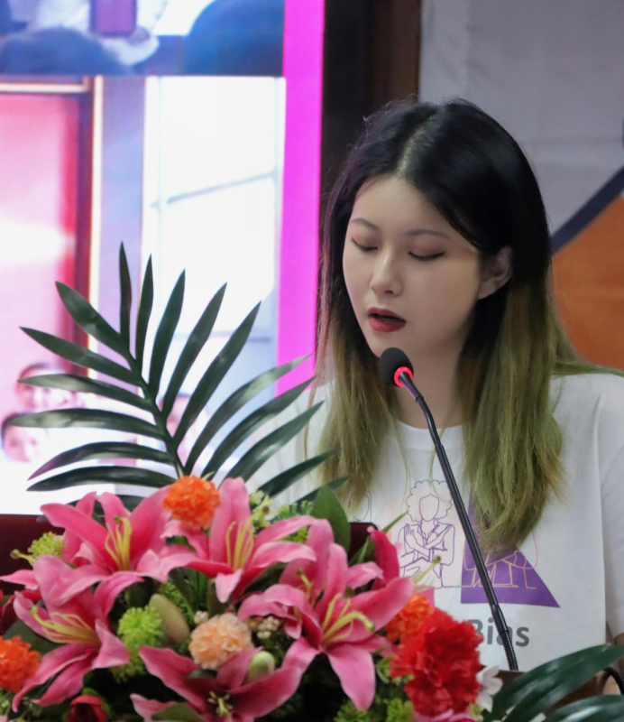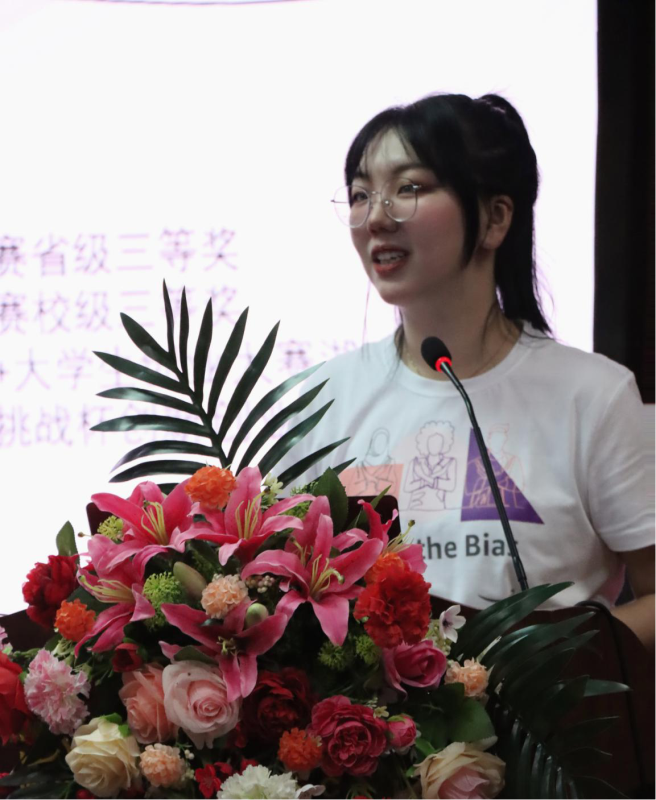 黄菁以“女性学习自强,打破性别偏见”为主题,向在场的学生讲述了互联网之母Radia Perlman、民国著名作家张爱玲的故事,让学生们了解到在不同时代背景下也有许多出色的女性代表人物。作为新时代的女青年,应该通过学习自强,增强自己的知识修养,打破性别偏见。