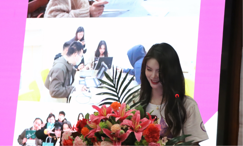 蔡亚琪以“女性发扬兴趣爱好,展现个人魅力”为主题,分享了她的兴趣爱好以及她与播音主持的故事。年幼时的她腼腆敏感,直到她在语文老师的鼓励下第一次完成了主持任务,自此之后便与播音主持结下了不解之缘。“谁都有第一次经历,或紧张,或焦虑,但不变的是我们对这些事情的热爱与向往。”步入大学后,蔡亚琪多次主持信息工程学部的活动和升旗仪式等。