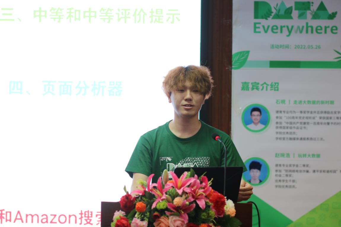 赵琬浩以“大数据时代”为主题,从大数据发展到现在的主流技术、亚马逊的贡献及主要技术两个方面展开讲座。根据弗雷斯特研究公司发布的指数,向学生们介绍了预测分析、NoSQL数据库、搜索和认知商业、流式分析、数据可视化、数据校验六个大数据技术,让大家真实地感受大数据技术的不断发展和成熟,加深了学生对大数据的了解。