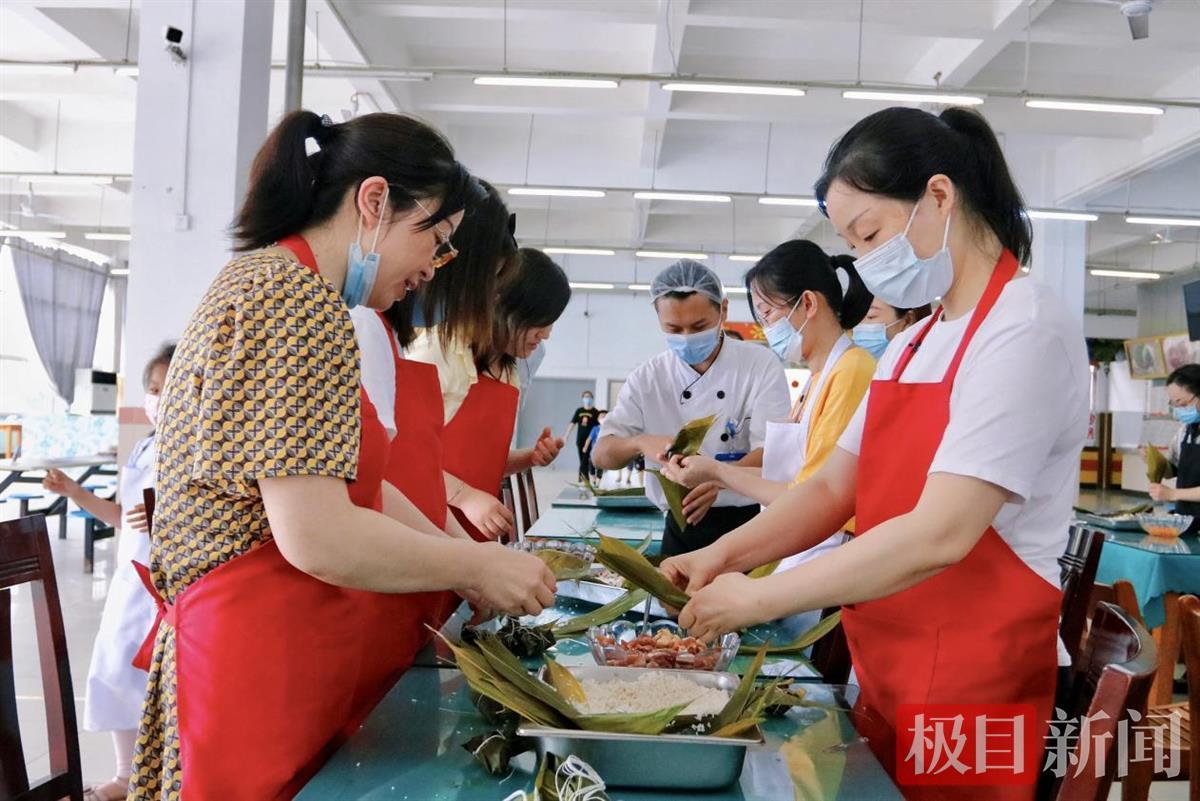 该校党委书记王军、工会主席吴翠红来到活动现场和教职工一起包粽子,和大家共度端午节。来自城建学部的曾老师说:“这是我第一次动手包粽子,形状不美,但自己动手,体验了劳动的快乐,很有成就感。”