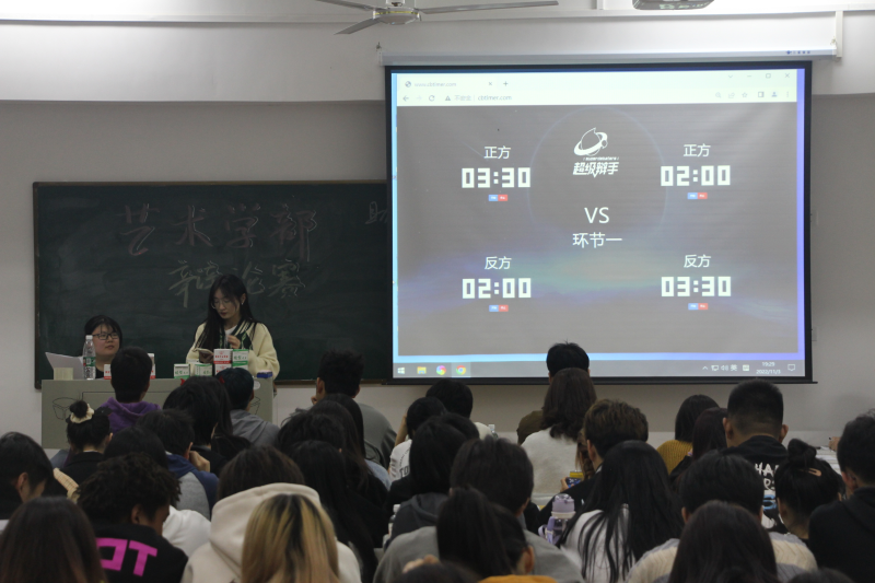 本次辩论赛由2019级视觉传达设计专业学生叶可欣和2019级环境设计专业学生李彦清担任主持人,2022级艺术与设计学部各班班长高李子康、唐忠义、范逸恒、刘俊哲、杨焯群、王婧欣担任评委。