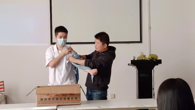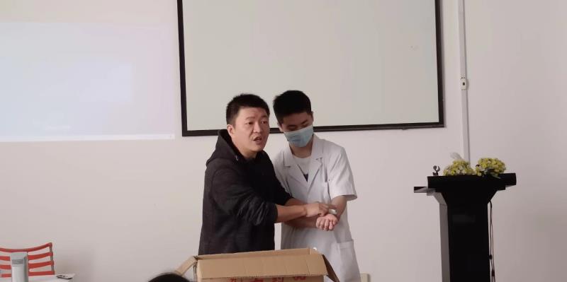 随后医学部护理系副主任吴际老师向各位老师们十分细致的讲解了止血包扎急救法,当遇上有心理问题的学生出现割腕情况应该如何采取急救措施和对受伤部位进行简易包扎。认真的向老师们展示每一个步骤。吴际通过示范向大家明确正确的按压止血方法,并对按压过程中需要注意的事项进行说明。