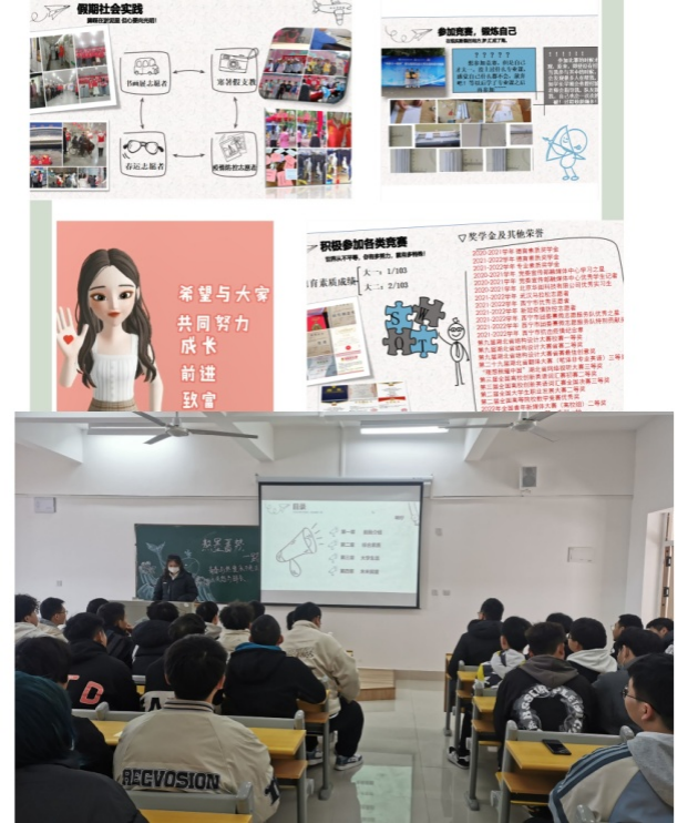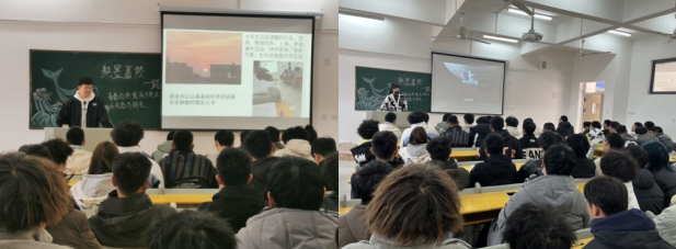 第一个环节是“追光而遇,沐光而行”。2022级土木1班、2班学生代表分享、总结上学期的大学生活。去年9月,大家经过一学期的调整和适应,积极参与团课、辩论赛、联谊、合唱等活动,通过分享交流,大家对大学生活有了新的期待。