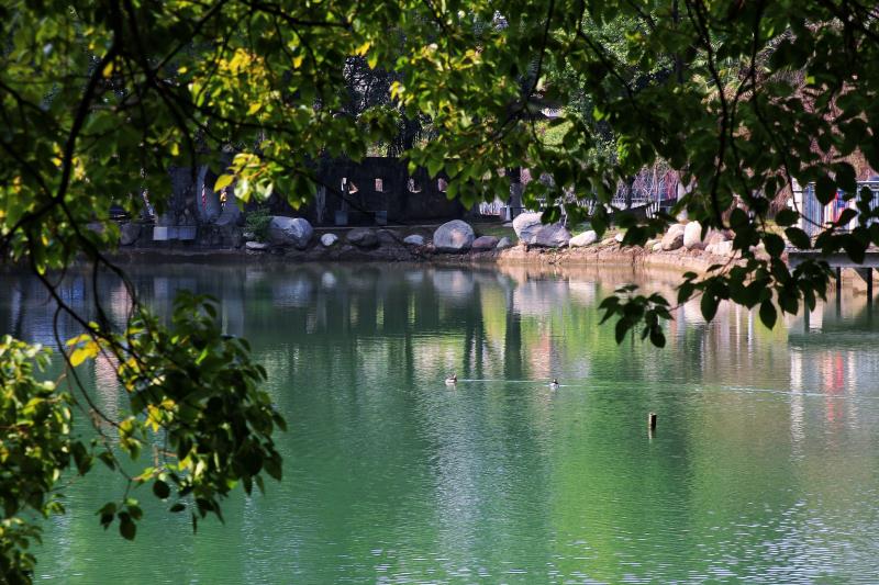 雁栖湖里,野鸭追逐嬉戏,感受春来水暖的气息;湖边,洁白的长瓣短柱茶在和煦的春风中开满枝头,小猫咪们也在暖洋洋的阳光下慵懒地享受着日光浴。