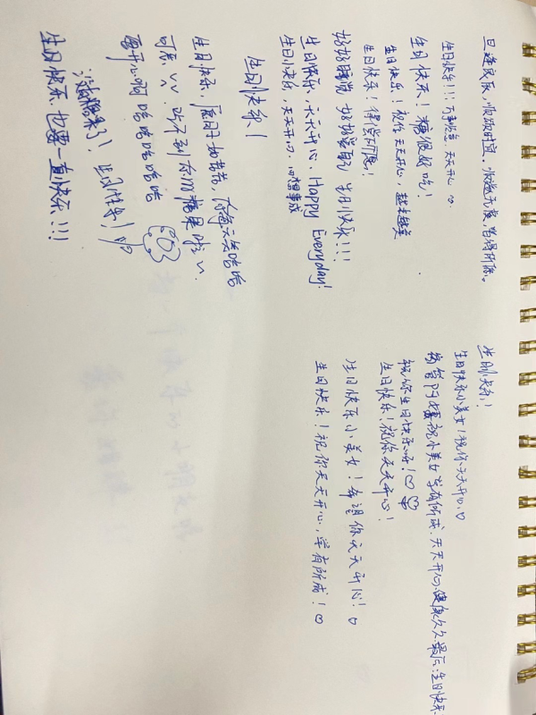 “今天是我19岁生日,也是大学里的第一个生日,很想和同学们分享生日快乐,也希望收到同学们的祝福,留作大学生活的珍贵纪念。”为了过一个特别的生日,艺术学部2022级动画1班学生刘赛慧提前作了精心策划。3月1日傍晚时分,她和室友提早来到女生寝室楼下,将桌子放在显眼位置,再在桌上放置纸盒,装满精心准备的糖果、小零食,插上“糖果换祝福”标识牌,并在纸盒旁放置一个活页本,方便同学们手写祝福语。路过的同学们纷纷停住脚步,在活页本上认真写下祝福,拿上糖果和零食共享这份甜蜜,很快活页本就写满了手写的祝福。“旦逢良辰,顺颂时宜,顺遂无虞,皆得所愿”,“生日快乐,愿日子如菇菇,你每天笑咯咯”......活页本上,同学们的祝福语真诚且亲切。“宿管阿姨祝小美女学有所成,天天开心”,不止有学生,宿管阿姨也为她送来了祝福。仅过了十几分钟,刘赛慧准备的一箱小零食就都找到了新主人,而她也收获了234份生日祝福。这份特别而又珍贵的礼物,让刘赛慧深感生日过得很有意义。“很有新意,虽然没有糖果,我也写下了对她的祝福,祝她生日快乐。”城建学部学生程思明说道。