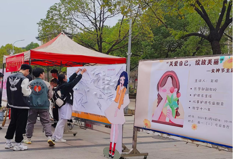 新闻网讯(通讯员 王逸凡 曹婉婷 张芬 陈思敏)为了迎接女神节的到来,我院于3月7日-9日在南一教学楼前举办了“撕掉标签,拒绝被定义,拯救‘窒息女孩’”活动和专题讲座。