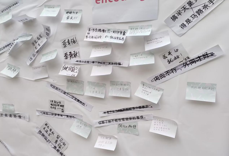 “我们渴望的是:不被定义,活出最真实,最精彩的自己。”活动现场设立了新颖独特的标签栏,比如对女性的批评:“不会做饭,怎么结婚”“给你读书就不错了”“不结婚就是不孝”“不生育就是不能生”“穿着打扮就是想勾引人”等等,这也让部分同学感到气愤,女性不应该这样被定义。她们便撕掉定义的标签,写出内心言语,留下鼓励的话语温暖人心,让更多的人增强女性的法律意识,使用法律维护自己的权利,摆脱被定义的人生。活动中还设有鲜花、糖果、手链、小玩偶等作为小礼品,让参与者更好地融入其中并留作纪念。